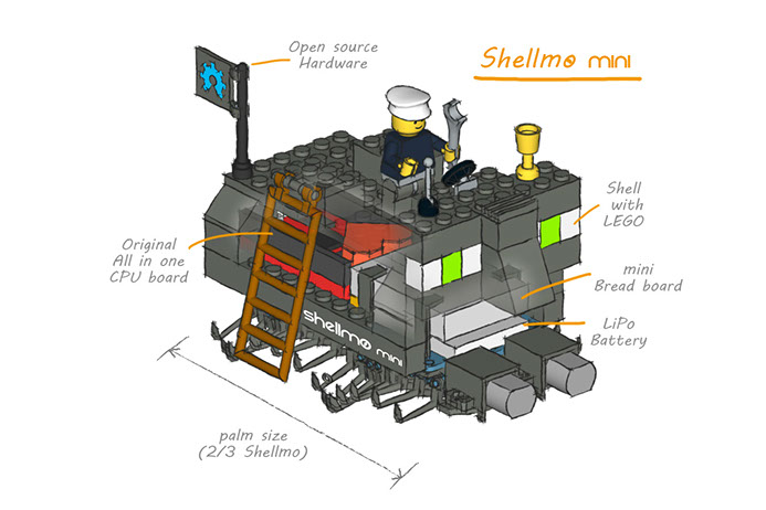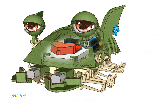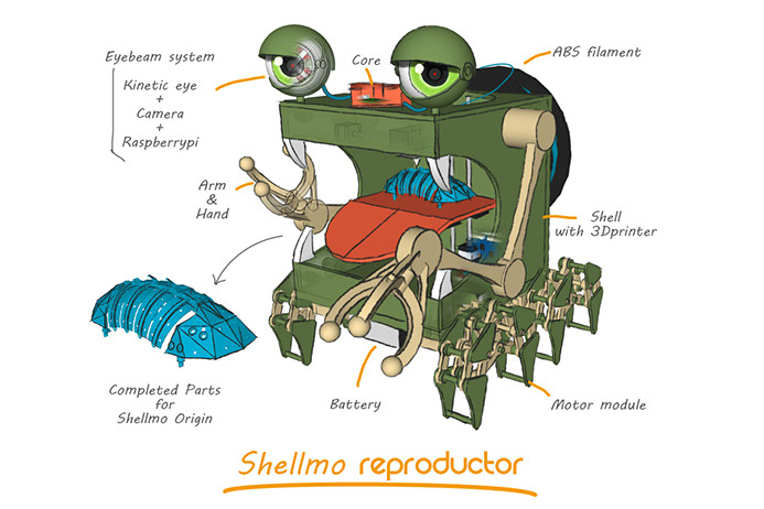 Almost all the parts to form the "body" of Shellmo can be made by using 3D printer.